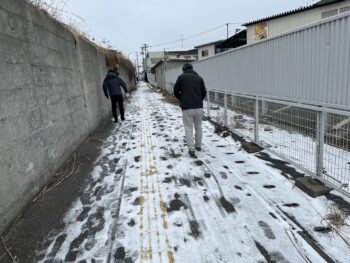 会社の前の側道も日陰になっていて、危ない状況の為