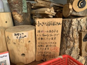 無人販売で薪やトーチ、薪割り台などを売っています。
