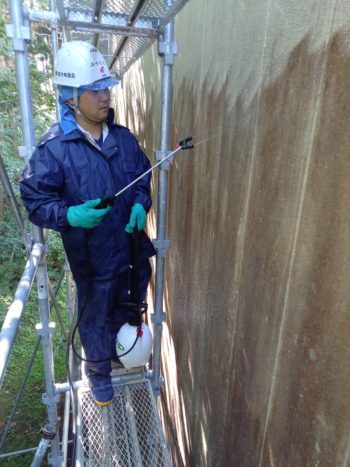 当社では高圧洗浄の際、ただの水洗いではなく、薬剤を入れて、目に見えない汚れまで