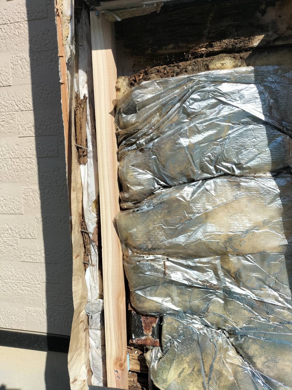 下地の木が腐っており、胴縁を補強して施工していきます。