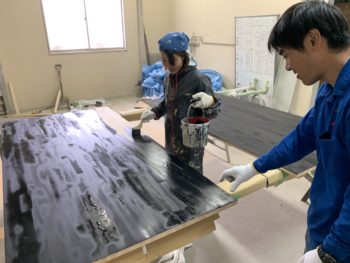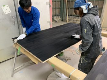 優しい先輩が指導しながら塗り進めていますね