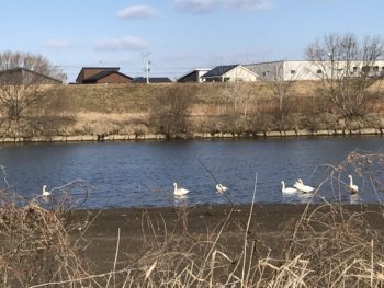 ドローン飛行練習中に馬淵川にて白鳥を発見!