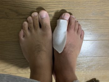 ↑お分かり頂けるだろうか(右足人差し指発症中、左との太さの違いに驚愕)