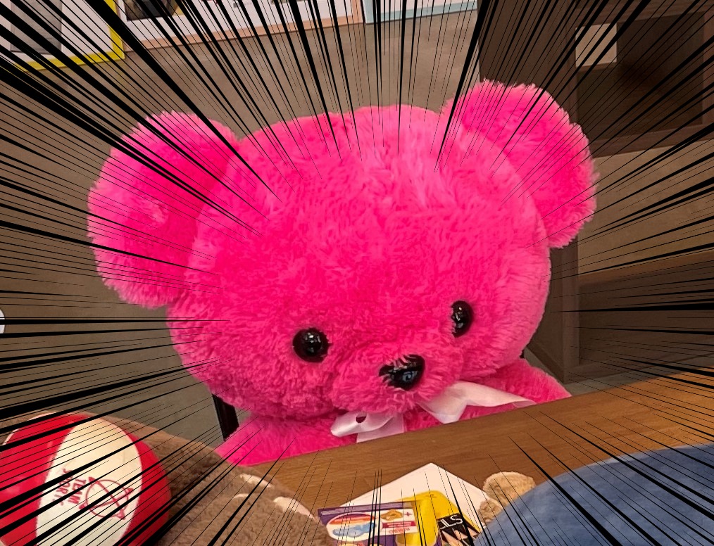 ピンクの熊から絶対にここは使わせないといった強い信念のようなものを感じます。