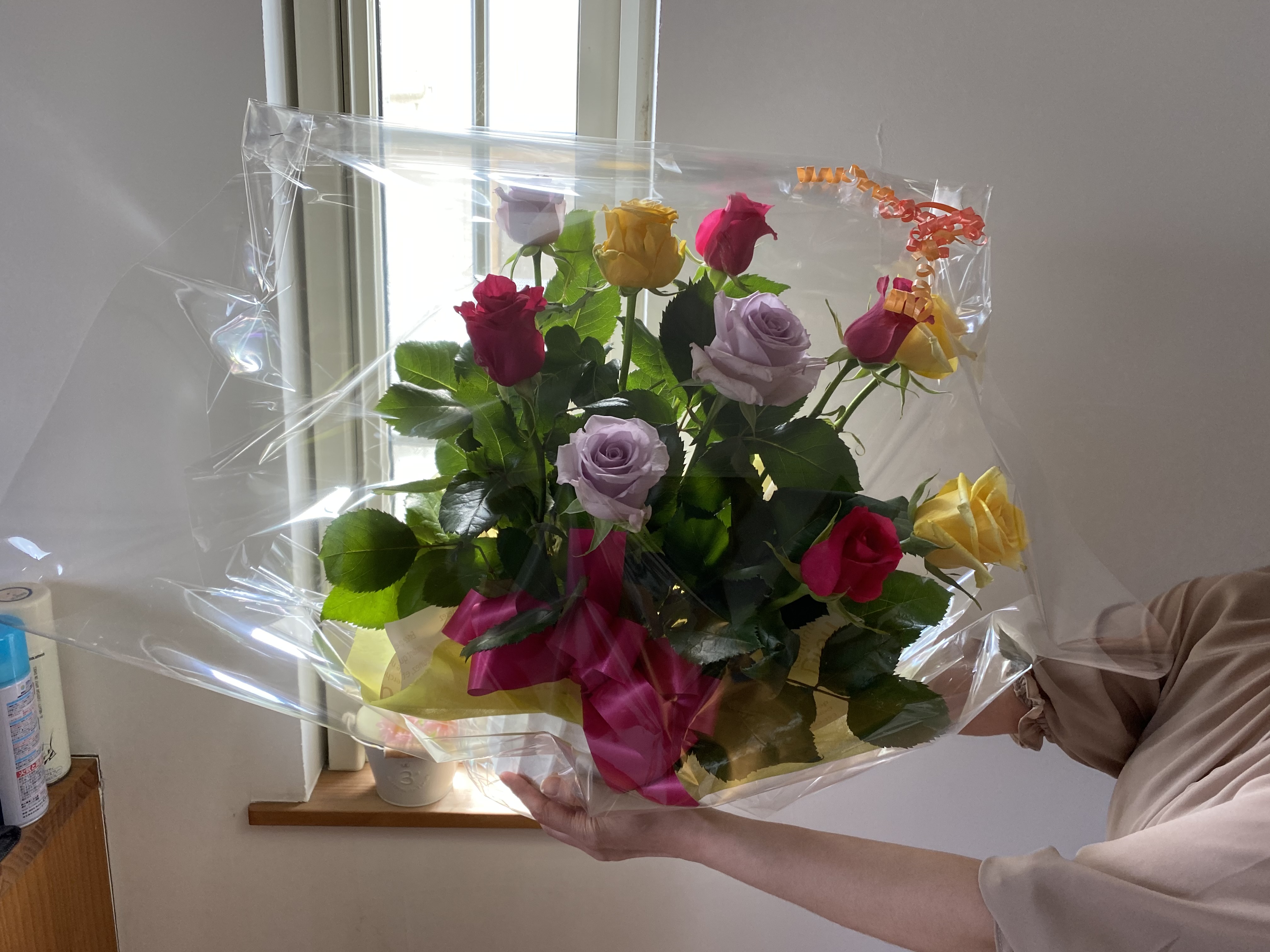 今年は、すっかり忘れてまして、急遽、薔薇の花を贈ることにしました!