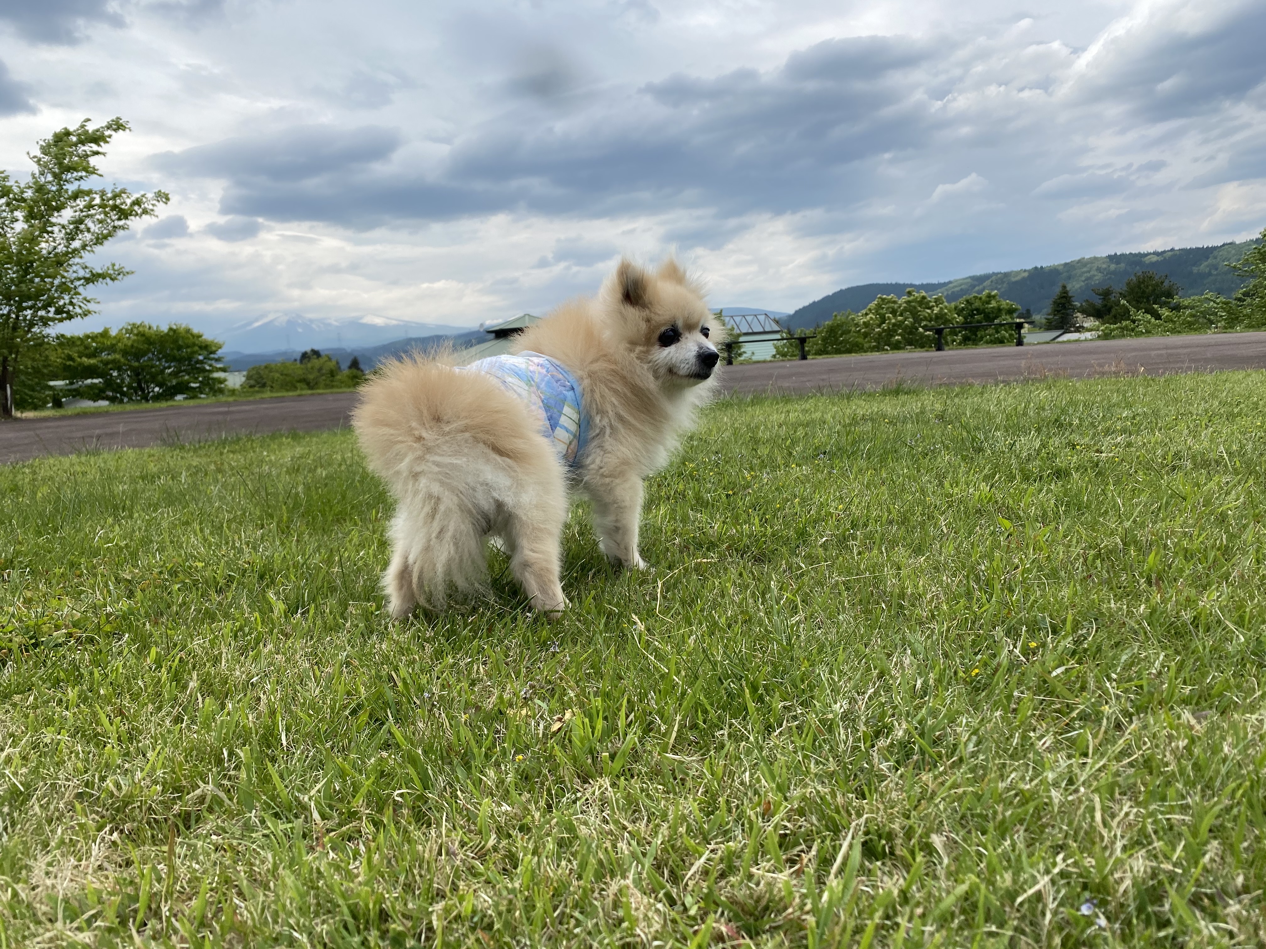 ポンちゃんも楽しそうに走り回っていました。一応、粗相のないようにおむつをしています。