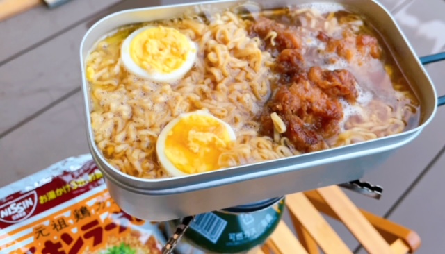 ついでにCMを見ていて、やってみたかったチキンラーメンも作ってみました。