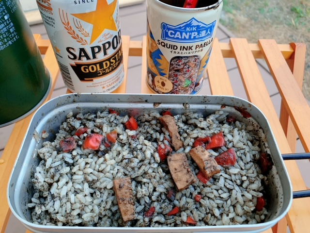 お米1合と、缶詰の中身を入れて炊くだけで、本格的なイカ墨パエリアが出来るはずですが・・。