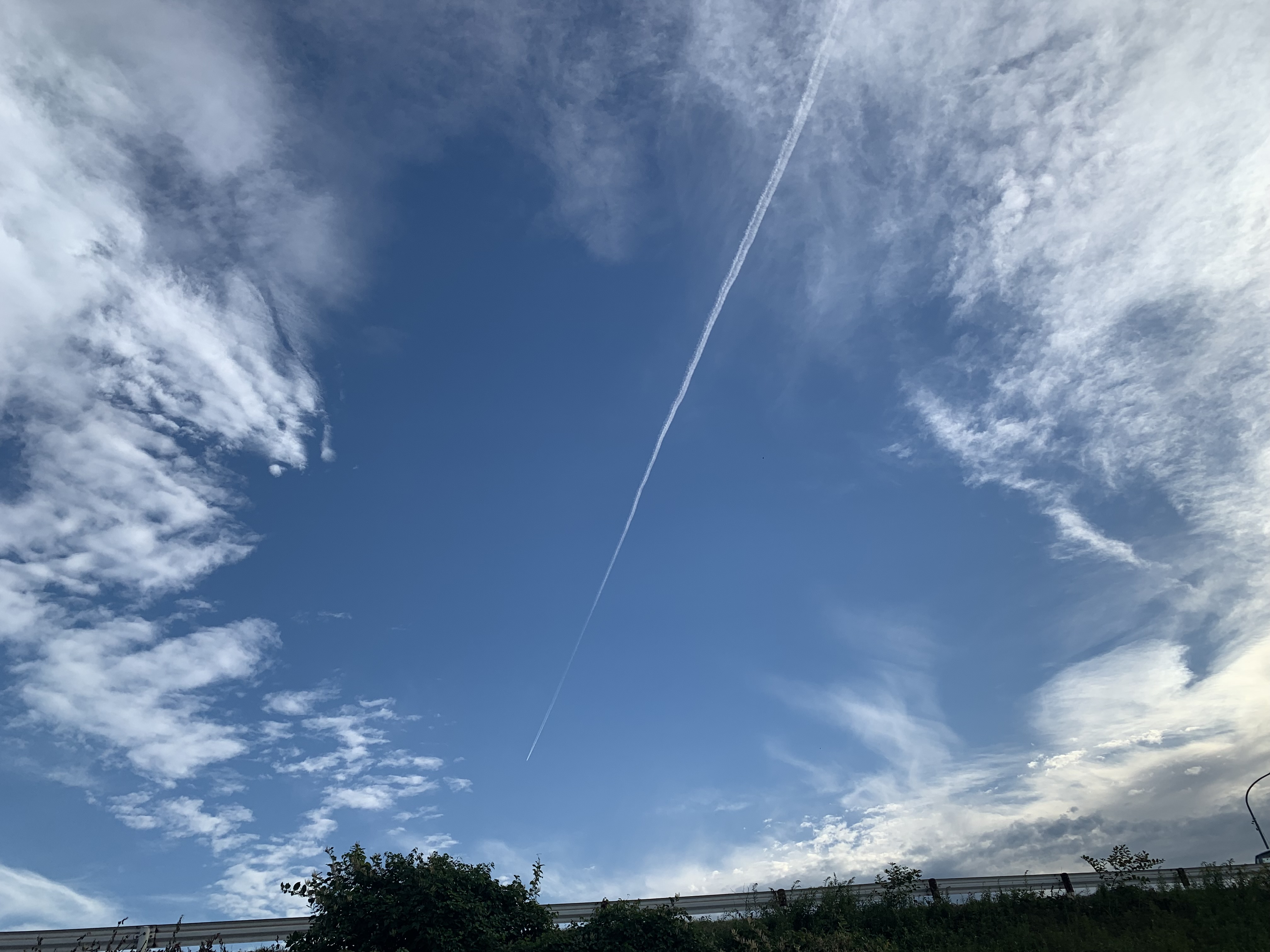 飛行機雲も綺麗な感じで撮れたのでパチリ。