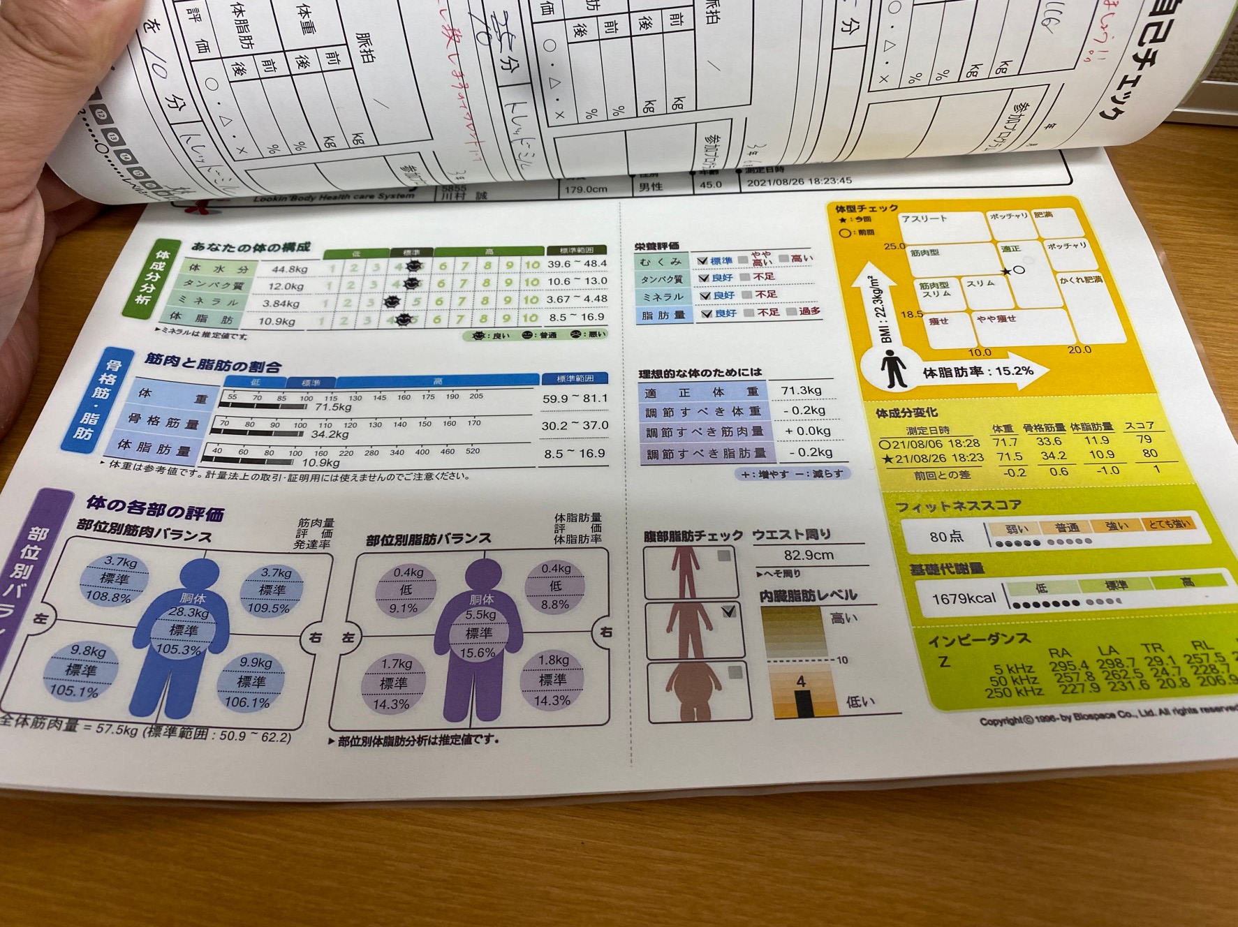 写真ではわかりずらいですが、体脂肪率が15.2%になりました。