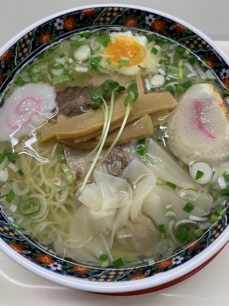 店主が言う一番人気の塩ラーメン、におすすめのワンタンをトッピング。