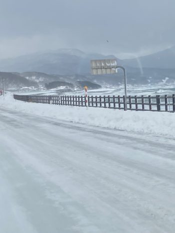 鯵ヶ沢を過ぎたあたりから路面はテカテカのアイスバーン状態