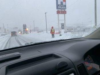 交通誘導員が4人ほどいましたが、対向方向をしっかりと見ていて