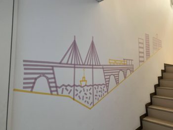 近くでよく見てみたら塗装でもしょっちゅう使うマスキングテープを使ってのアートでした。