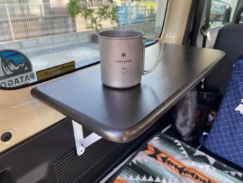 自然の中で、曳きたてコーヒーを飲むのが好きなので、YouTubeを参考に、車内にカフェテーブルを設置してみました。