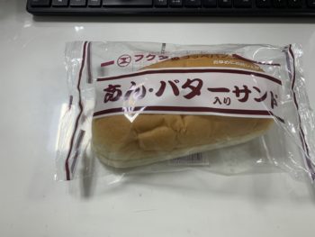 福田パンの一番人気、あんバターサンド入りコッペパンです。