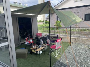 タープを張って、火起こしが早い七輪をセット!!
