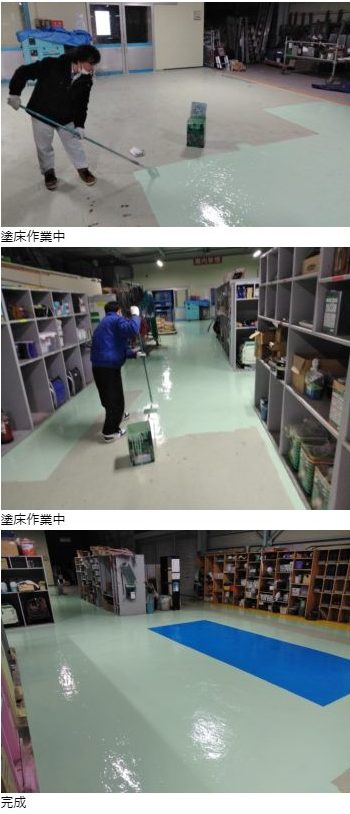 実はガイソー八戸(佐々木商会)では、塗装技術として相当難しいとされる床の塗装まで施工しています。