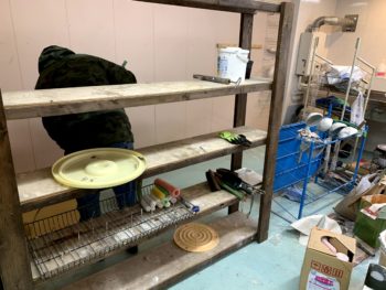 壁際に綺麗に陳列され並べれた道具を棚から降ろして棚をずらしてから