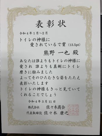 と、いう事で当社では2か月に一回、最もトイレ掃除があたった