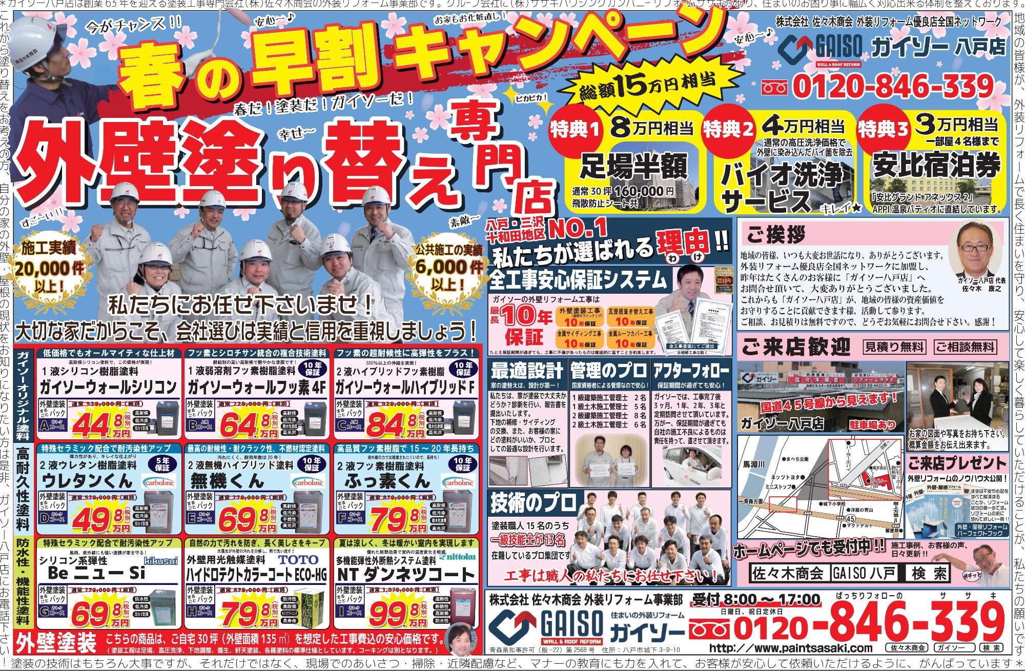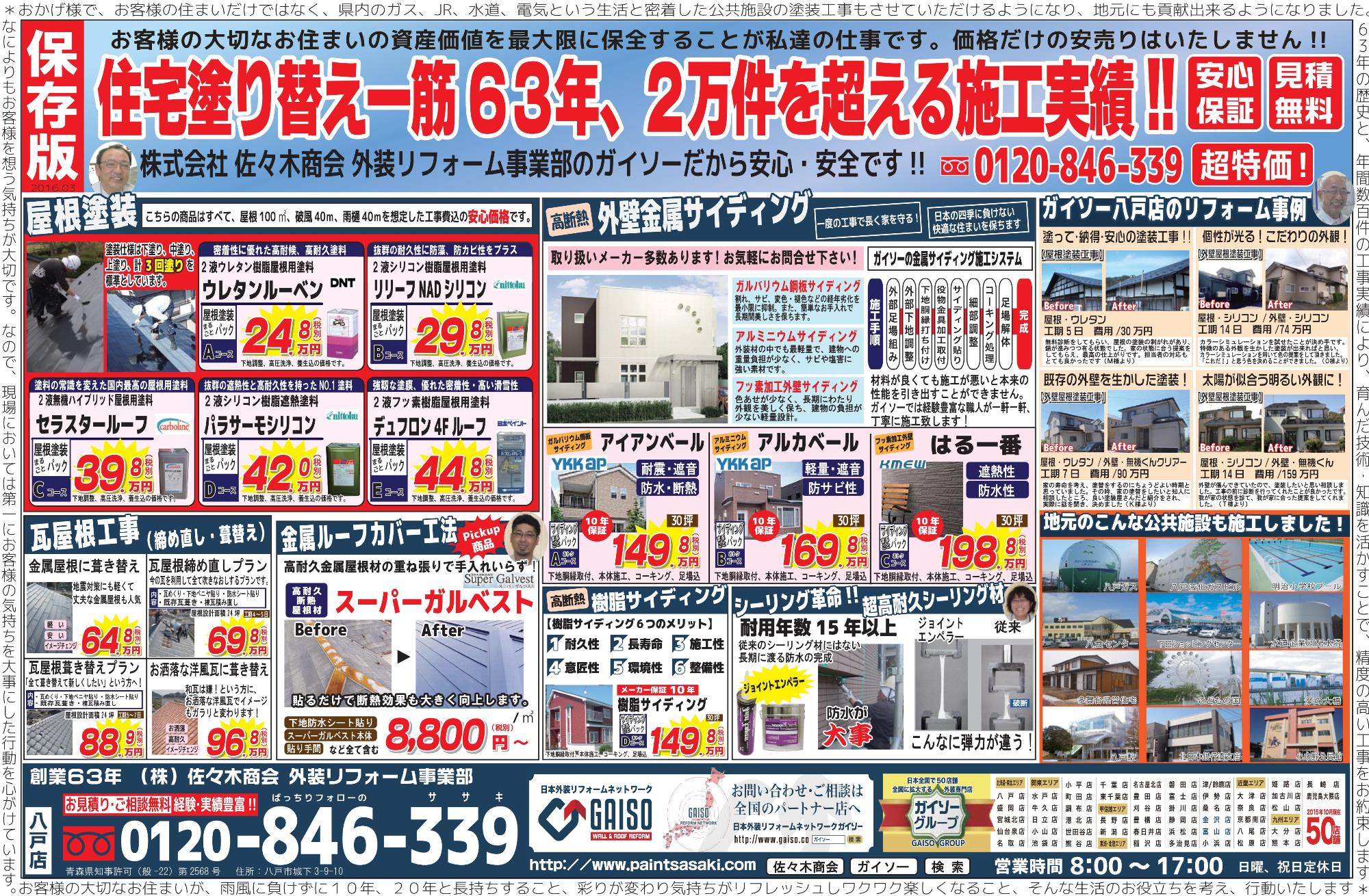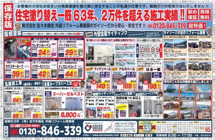 HOME最新チラシ・イベント最新チラシ春の早割キャンペーン 春の早割キャンペーン(終了しました) 一言 大切な家だからこそ、会社選びは実績と信用を重視しましょう!外壁の塗替えなら私達にお任せください! 最新チラシ一覧はこちら 最新チラシ・イベント一覧はこちら 佐々木商会について 会社案内代表挨拶企業理念会社概要アクセスマップ 選ばれる理由 表彰実績一覧 職人紹介 スタッフ紹介 最新チラシ・イベント 一覧 メディア実績 一覧 アフターサービス ブログ 施工事例 施工事例一覧 色/カラー別の施工事例 グレー・ブラック系 ブラウン系 イエロー・オレンジ系 レッド・ピンク系 ブルー系 グリーン系 ホワイト系 2色以上 戸建て 外壁リフォーム 屋根リフォーム 外壁・屋根リフォーム 内装リフォーム 雪止め設置 雨漏り修理 アパート・マンション 工場・商業施設 工場 商業施設 公共実績 公共施設の外壁塗装 公共施設の設備工事 床塗装 JR工事実績 お客様の声 お客様の声一覧 お役立ち情報 外壁診断 無料雨漏り診断 価格表 ジョイントエンペラー よくある質問 リフォームの流れ 工場・商業施設の塗装 お問い合わせ お問い合わせ 無料お見積もり 資料請求 TOPへ戻る ホーム 佐々木商会について 会社案内代表挨拶企業理念会社概要アクセスマップ 選ばれる理由表彰実績一覧職人紹介スタッフ紹介最新チラシ・イベント 一覧メディア実績 一覧アフターサービスブログ 施工事例一覧 お客様の声一覧 お役立ち情報 外壁診断無料雨漏り診断価格表ジョイントエンペラーよくある質問リフォームの流れ工場・商業施設の塗装 お問い合わせ お問い合わせ無料お見積もり資料請求 Copyright © 2017 佐々木商会 All Rights Reserved.
