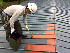 小屋の屋根に錆止を施します