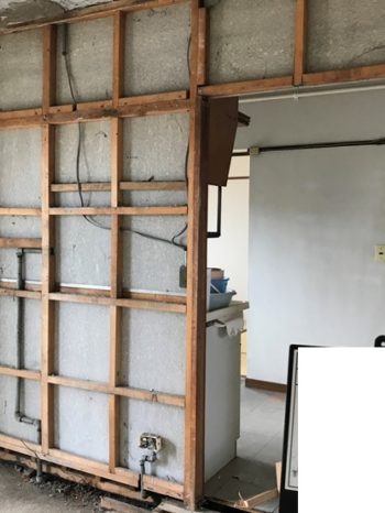 | ご提案内容 | 居間壁既存撤去+下地補強+耐火ボード張+クロス仕上げ |